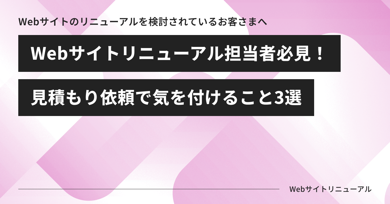 そこで今回は、Webサイトリニューアルの見積もりを依頼する際に、知っておきたい3つのポイントをご紹介します。