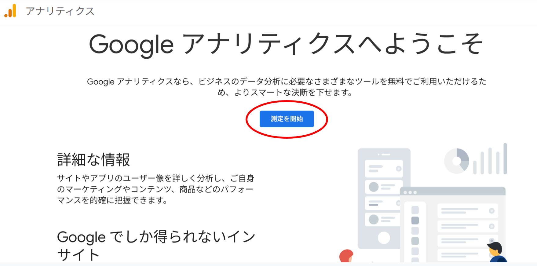 ➀Googleアカウントにログインし、Analyticsの管理画面を開く