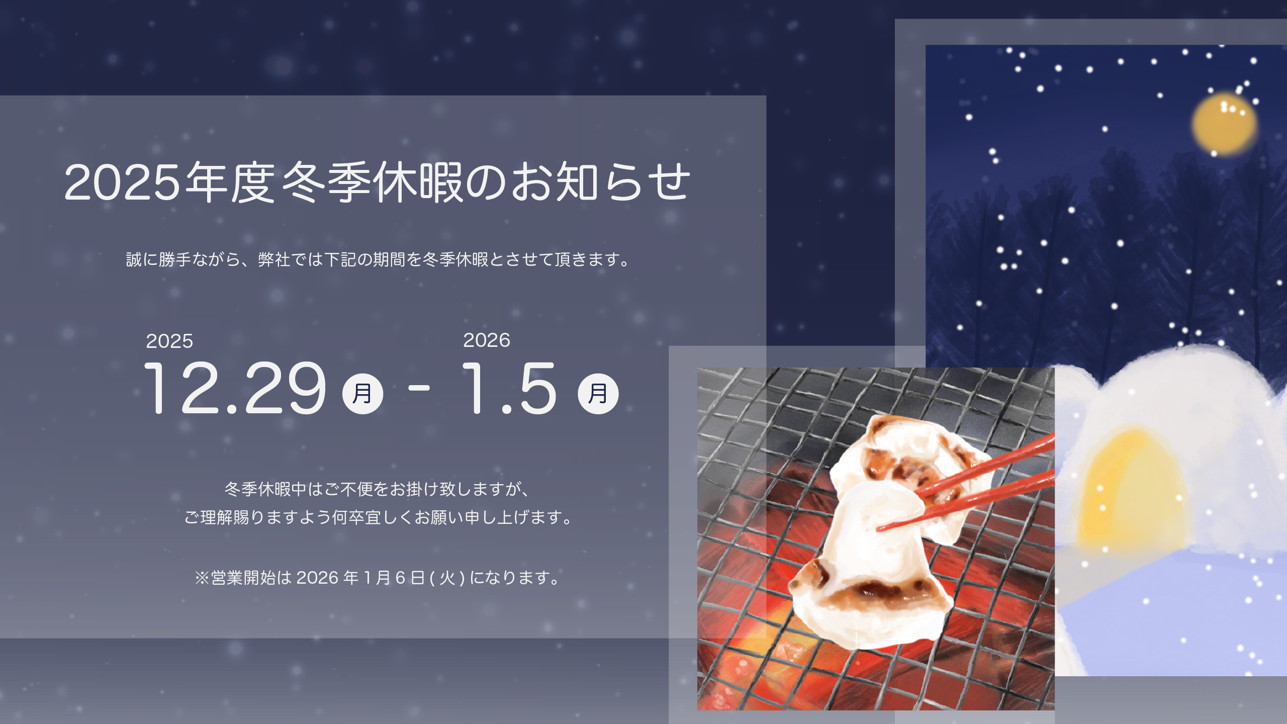 冬季休暇中はご不便をお掛け致しますが、ご理解賜りますよう何卒宜しくお願い申し上げます。